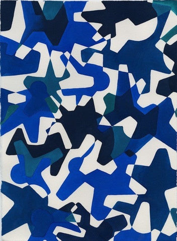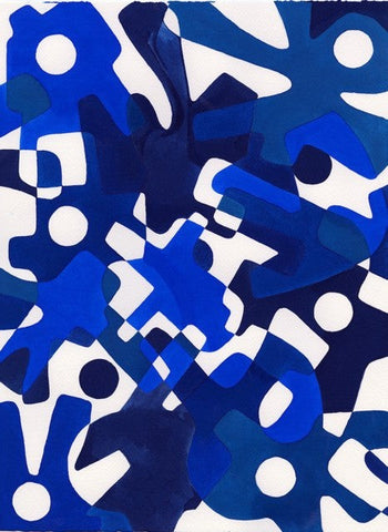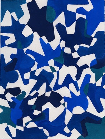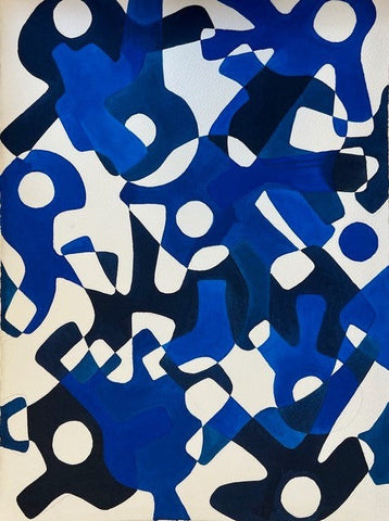 Julio Galvez, Blue and White Circles 2, watercolor, 15" x 11.5" SOLD